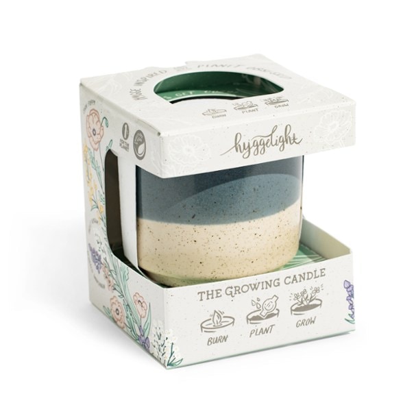 Enjoy the pleasant scent of this candle from Hyggelight- The Growing Candle at home or the campsite. Once the wax is gone, fill the container with soil and plant the label to grow some wildflowers.