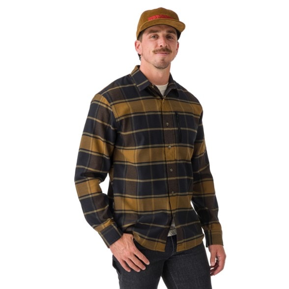 An everyday flannel shirt with custom buttons and a zippered chest pocket, the men's Flylow Angus Flannel is a lifestyle piece you can wear on the mountain or while riding your bike to work.