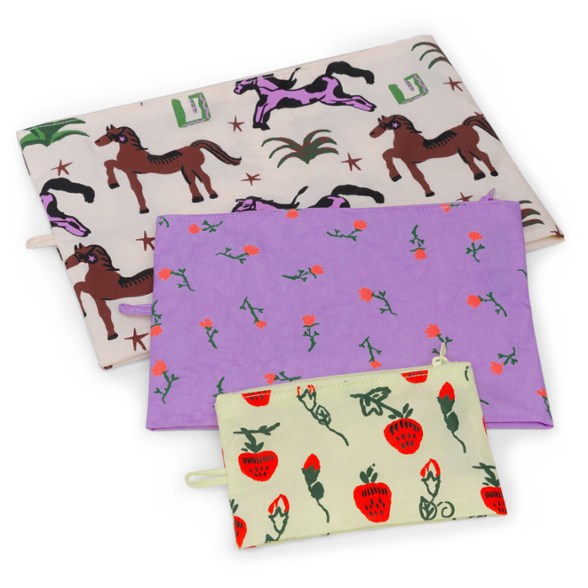 Whatever you're toting, keep it neatly packed and organized with this set of 3 all-purpose Baggu pouches. They expand to hold your essentials and lay flat when not in use.
