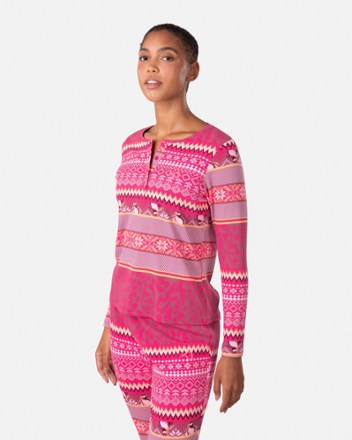 Supersoft and ultracozy, the women's Kari Traa Kari PJ Long-Sleeve Top has a colorful Norwegian-inspired pattern that will brighten up any evening around the campfire or weekend morning at home.
