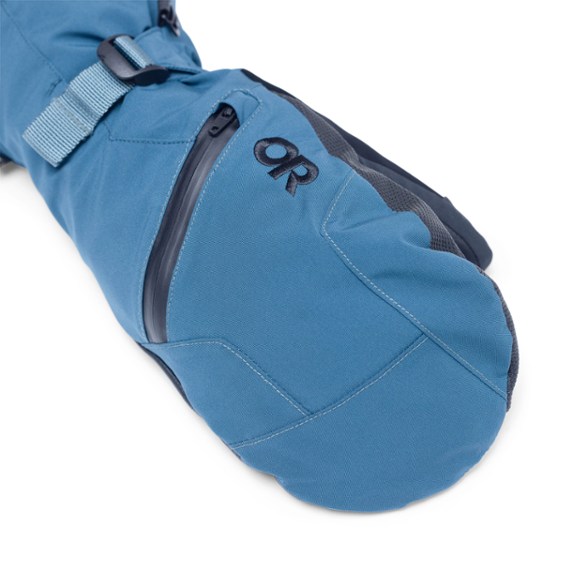 Great for inbounds days at the resort, the Outdoor Research Revolution GORE-TEX Mittens shield you from weather and provide easy grip. They have zipper pouches for heat packs to boost your warmth.