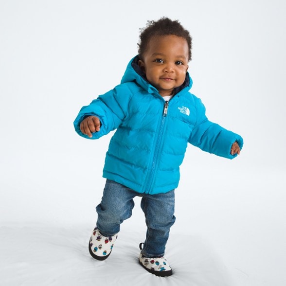 Everyday adventures need protection, too. The insulation in this infants' reversible jacket from The North Face keeps them warm—even when wet. Plus, it's water-repellent for those drizzly days.