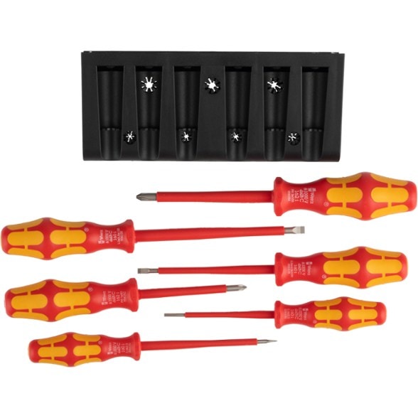 This set of from Wera includes 6 individually tested, insulated screwdrivers. These insulated screwdrivers are tested for secure work at 1,000 V as per IEC 60900.