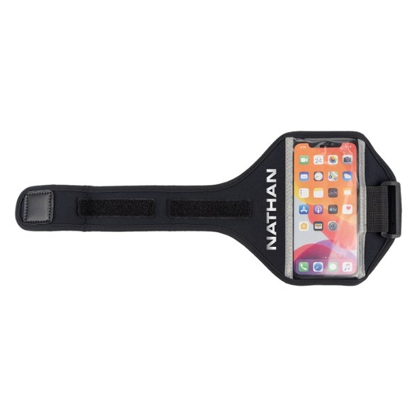 Keep your phone protected and accessible. This Nathan carrier has slip-in pocket with see-through conductive touch-screen technology so you can access your splits, playlist and incoming messages.