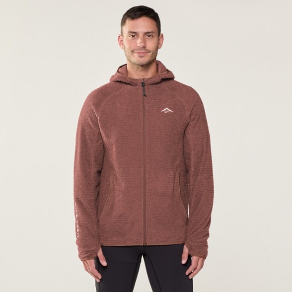 - With a cozy hood, thumbholes and zippered hand pockets, this fleece can be worn both on and off the trail
