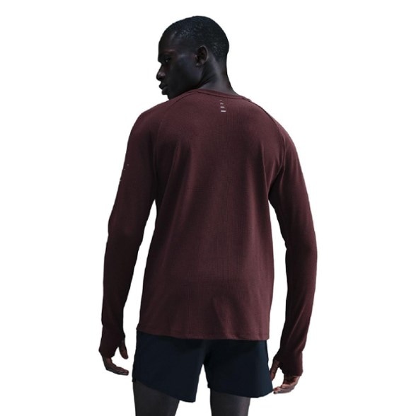 From warm-up to cooldown, this Nike shirt keeps you comfortable. It pairs soft waffle-knit fabric with sweat-wicking Dri-FIT technology to help you stay warm and dry. The Nike logo is reflective.