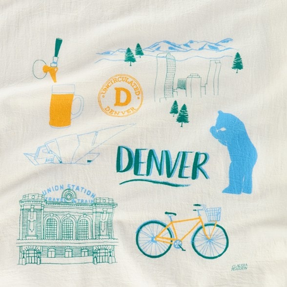 Celebrate The Mile High City with this tea towel from illustrator Claudia Pearson. It's screen printed by hand on 100% flour sack cotton.