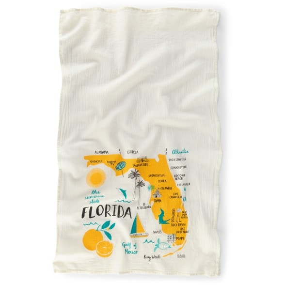 Celebrate The Sunshine State with this tea towel from illustrator Claudia Pearson. It's screen printed by hand on 100% flour sack cotton.