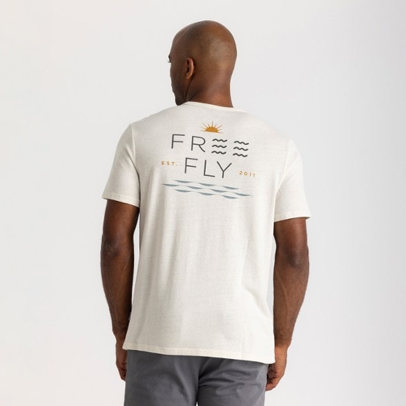 Great for summer outings around camp or by the water, this Free Fly T-shirt is casual and comfortable. The supersoft tri-blend jersey fabric feels just like your favorite old tee.