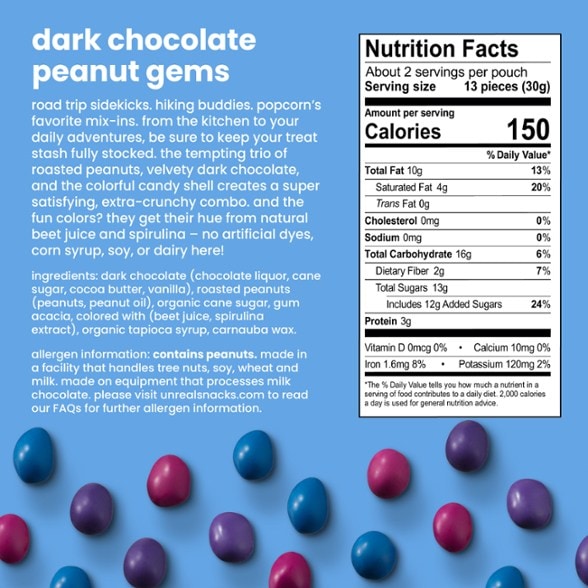 Keep your treat stash stocked with these Dark Chocolate Peanut Gems from UNREAL. They're perfect for road trips, hikes and daily adventures.