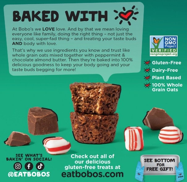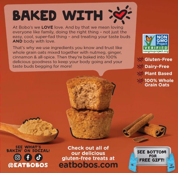 - All of Bobo's Oat Bites are free from gluten, dairy, soy, wheat, meat, refined sugars and corn