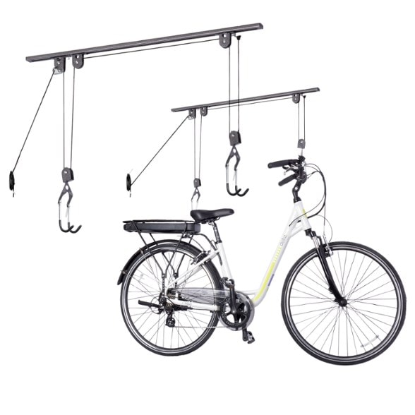 - Crafted from robust steel, the lift is designed to withstand the weight of your bikes, kayaks and more