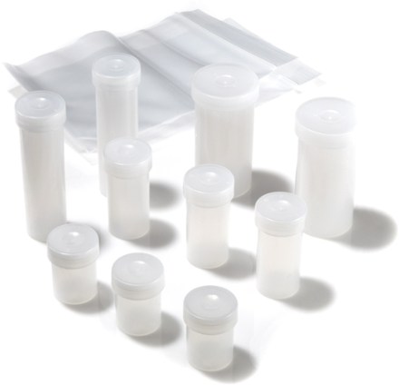 • Multisize polyethylene vials come packed in a reusable 5 x 8 in. zipper-lock bag