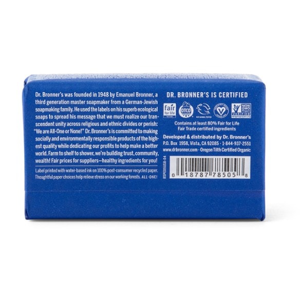 Dr. Bronner's Pure-Castile bar soap is made of all-natural ingredients and organic oils.