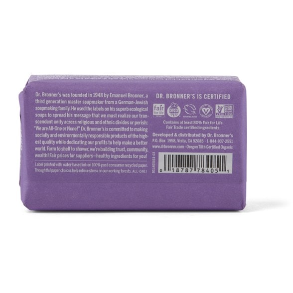 We absolutely LOVE Dr. Bronner’s! It’s awesome for everyone in the whole family (adults, kids and dogs). I also love how the soap is made with simple, nature friendly ingredients. I’ve been using this bar soap since 2009 and will continue to use it until the stop making it!! Love supporting old, family owned brands (I think they started in 1858). Beyond its versatility and gentle formulation, the lavender scent is simply delightful—it’s soothing and calming, making it perfect for a relaxing bath or shower. The quality and longevity of each bar are outstanding, providing excellent value for money. Plus, knowing that Dr. Bronner’s upholds ethical and sustainable practices makes me feel even better about using their products. This soap truly embodies the perfect blend of tradition, quality, and environmental consciousness.