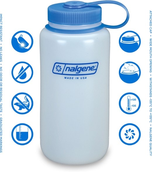 I love these white Nalgene bottles as the more flexible plastic freezes well, whereas the standard clear Nalgene bottles are more prone to shattering when freezing water in them. The 48 oz. bottle is great for packing extra water without taking up extra space. Fits just as well as the 32 oz. in the outer mesh side pouch of my pack.