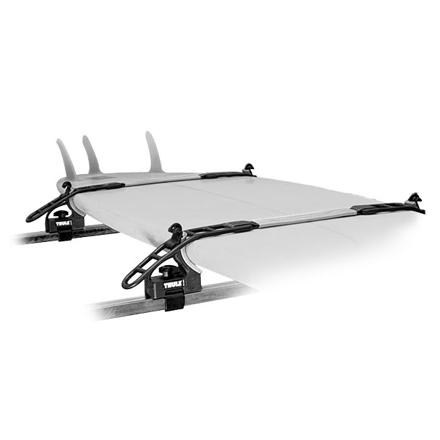 This carrier for Thule racks can secure up to 2 surfboards for travel by automobile