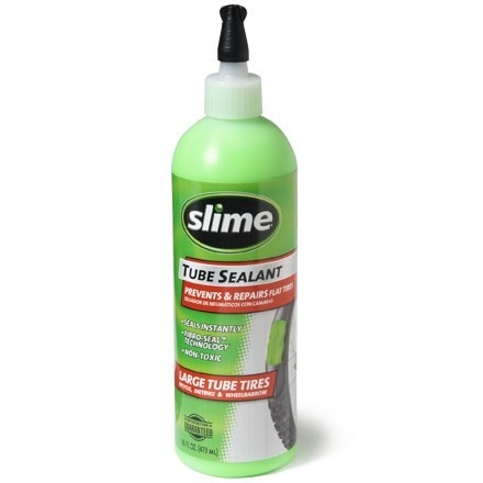 This 16 fl. oz. container of Slime preventive tire sealant protects against tread-area punctures in tube-type tires. When punctures occur, Slime already in the tire creates a permanent flexible plug.