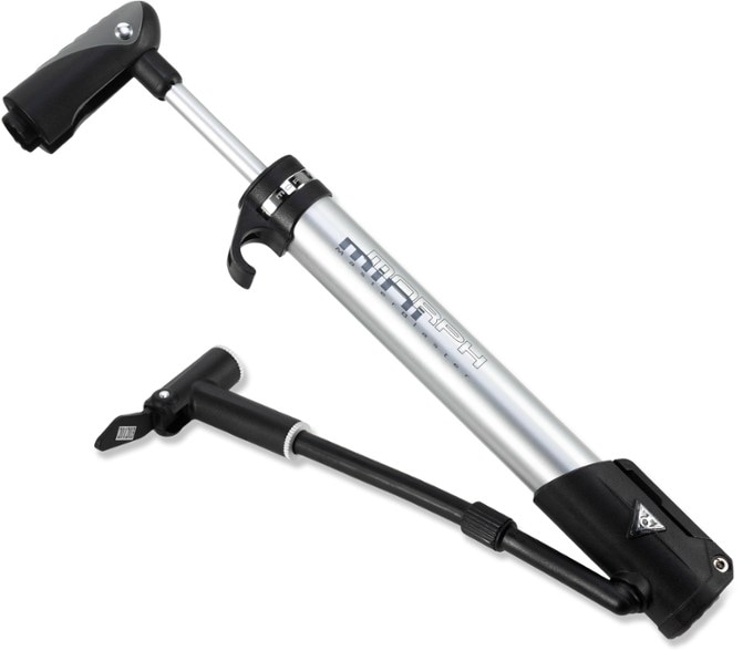 I bought this pump to put on one of my bikes. After getting it, I saw the strange mounting bracket that could either be zip-tied to the frame or it could be mounted in place of a water bottle cage. I zipped it to the frame of my recumbent. When I unloaded the 'bent, I put it on the left-side seatstay on my Surly Cross-Check. It's a dandy little pump that's lightweight, pumps quickly and with minimal effort. It puts out an impressive volume of air considering it's a single-stroke design. Many friends have commented on the quality, speed and ease of use. The short hose makes a big difference in terms of ease of use and while it's *just* long enough, another quarter inch or even a half-inch would make a difference. If you need a pump, strongly consider this one !! The regular road morph is just a little too big for my taste but it does have an air gauge. The mini does not.