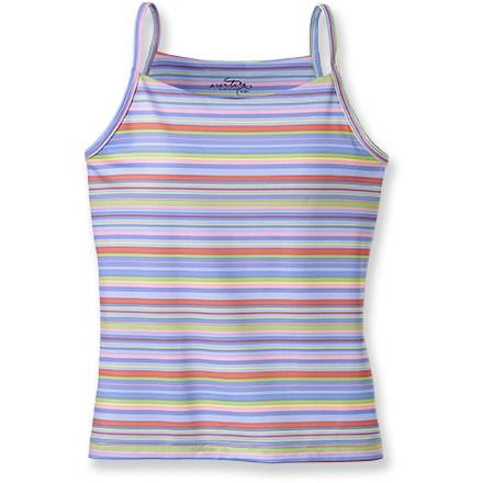 This tank was a terrific price and even better quality. It has a SPF built in for outdoor wear as well. I wear it to the gym for cycling classes, yoga and working out. LOVE IT. The fit is very true to size and it is of very nice quality. This tank has a built in shelf bra. The tank itself does not have much stretch to it, although it is well made and looks great.