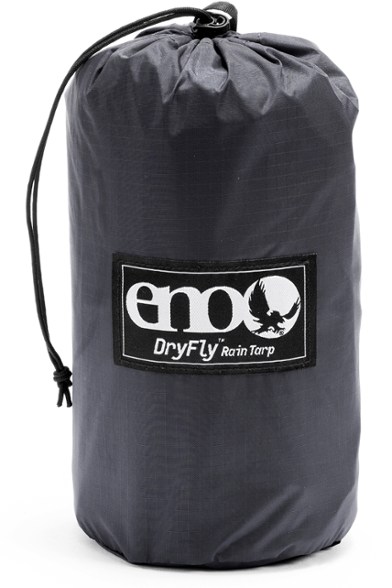 - ENO DryFly rain tarp has a built-in stuff stack for convenient packing