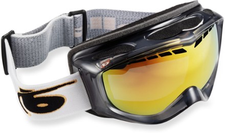 Bolle Jinx goggles feature Fire Red light colored lenses with layered red mirror coating to enhance visual acuity and cut snow glare on the slopes.