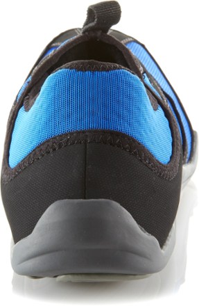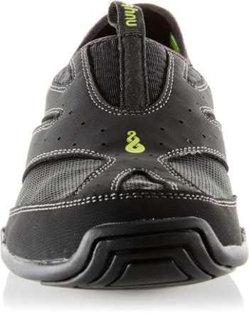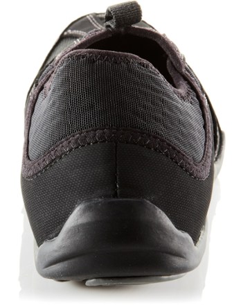 Read More I'm new to kayaking, and was having a hard time cramming my size 11 thick soled sandals into the bow of my inflatable kayak. The Ahnu shoes are just what I needed. I wanted a shoe that did not have any toggles on the heel to adjust the fit. The elastic cuff around the opening of these hold them on just fine. The soles are thin, and sometimes I can feel pebbles through them when walking, but that's an OK trade off--I didn't buy them to hike or run in. I rinse them out, pull out the insoles and let them dry between uses. No odor problems. -