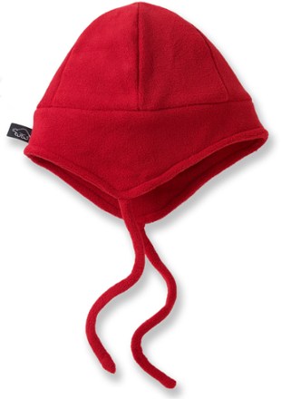 - Earflap design provides additional warmth and coverage; ties secure hat to head