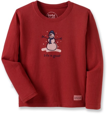 Score some massive comfort for your child with thes soft, long-sleeve Life is good® Snowman tee.