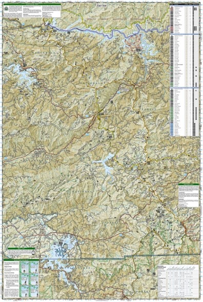 This National Geographic Trails Illustrated folded map offers comprehensive coverage of the Fontana and Hiwasse Lakes area of North Carolina.
