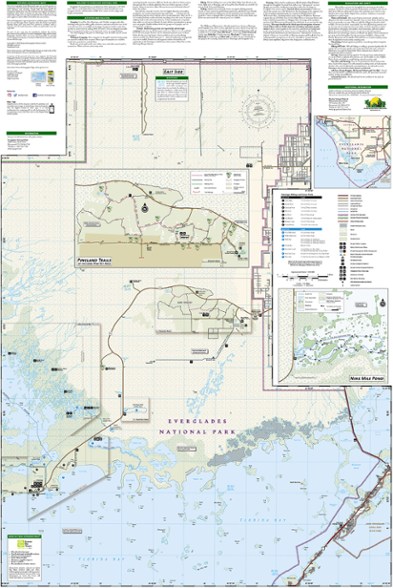 - Inset maps provide extensive detail of Flamingo, Whitewater Bay, Pineland Trails of the Long Pine Key area and Nine Mile Pond