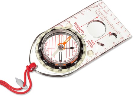 - Luminous, 2-color bezel ring, silicon map grippers on base, and meridian lines help orient compass to map