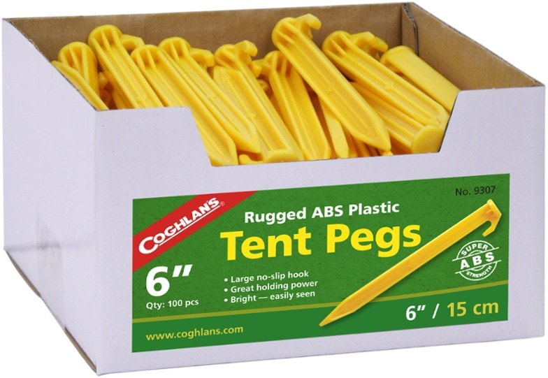 Coghlan's 6 in. ABS tent pegs feature a rugged design and durable ABS polypropylene material. They are nearly indestructible!