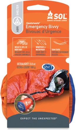 Don't get left out in the cold. The SOL Emergency bivvy reflects up to 90% of your body's heat back to you.