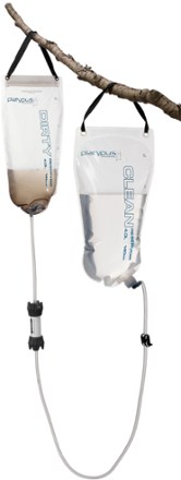 - To use, simply fill the dirty reservoir with water and hang it above the clean water reservoir to let gravity carry water through the filter
