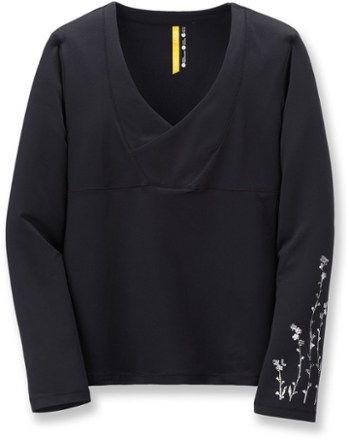 - Cross-over V-neck front and floral detailing on sleeve provide feminine style