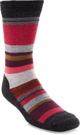 Read More I love these Smartwool socks as everyday socks living in the cool Pacific Northwest; the stripey colors of the Saturnsphere are especially fun. I have owned several pairs over the years and overall they're good socks, however my one complaint is that the heel tends to slide down such that the part that rubs against my shoe is *above* the reinforced area (where the orange stripe is in the image), and wears thin very quickly. I thought that this might be due to my needing a larger size; I wear a 10.5 which is right at the cusp between M and L, so after wearing Mediums for a while, I bought two pairs of Larges to see if that would help. Alas, they still sagged. If I always wore these over tights/longjohns that kept them in place, this issue might be avoided, but I usually wear them on bare skin and it inevitably slides down and wears through the un-reinforced area. -