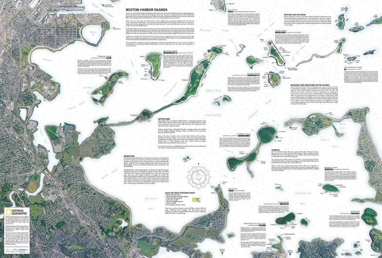 - Provides unparalleled detail of all 34 harbor islands, shorelines, downtown Boston and neighboring communities, Boston Inner Harbor and surrounding waterways
