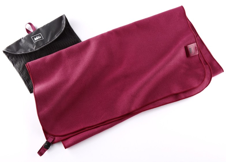 I had been using a ShamWow towel for pool/gym/camping/backpacking, but the texture is a bit rough. I picked up this large microfiber towel at REI on sale. Overall, it's exactly what I wanted and looks like it'll be a great portable quick-drying towel. However, be aware that the manufacturing process apparently uses a terrible dye. I had to wash the towel using no less than seven buckets of water (including two with detergent) and vigorous hand scrubbing to get the excess green dye out. The water turned dark green in all of the buckets except for the last two. I was not a happy camper after spending a half hour just getting the towel ready for it's first use.