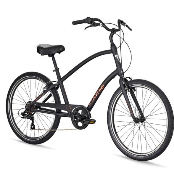 I’ve had many road bikes and mountain bikes, even a couple of beach cruisers but my new Townie is perfect for city and suburban riding. The upright position, comfortable saddle and smooth 7-speed drive train have made this bike a new favorite. The aluminum frame is light and the entire package makes this a pleasure for rides round town. Great fun and still providing a workout for serious cyclists who may decide to go fast.