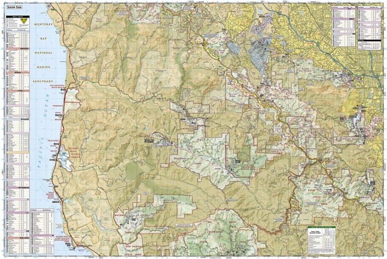 The Trails Illustrated Skyline Boulevard topographic map shows you the way to the scenic attractions and recreational opportunities along the side of the Santa Cruz Mountains.