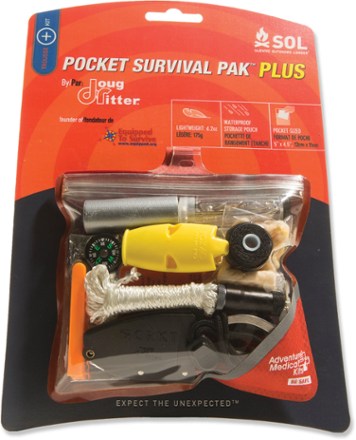 - SOL Pocket Survival Pak Plus is packed in a welded, waterproof pouch with zippered closure; it measures 5.25 x 4.75 in. letting you carry it easily in a jacket or pack pocket
