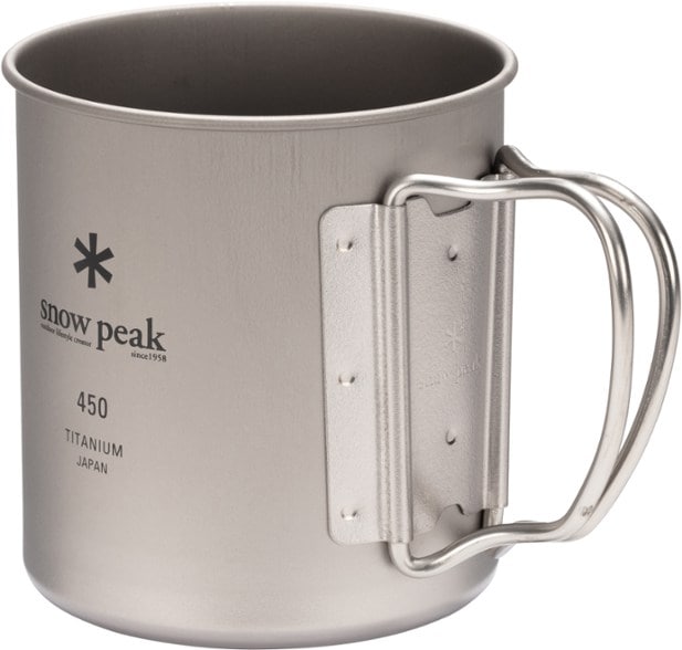 - Snow Peak Titanium Single 450 Cup has 2 folding handles that allow easy packing; cup holds 14 oz. of liquid and weighs only 2.4 oz.