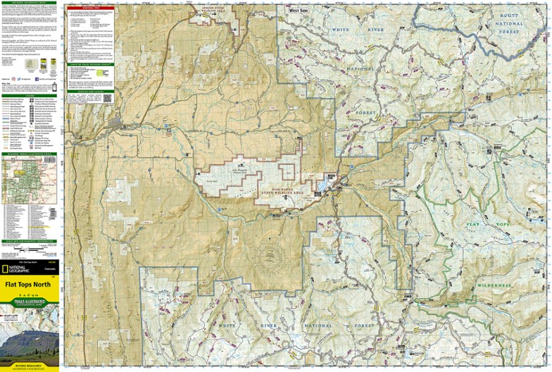 Your key to adventuring in Colorado's second-largest wilderness, the Trails Illustrated Flat Tops North topographic map offers unmatched detail and valuable info to assist you in your exploration.