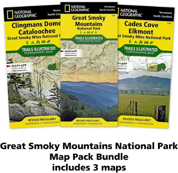The Trails Illustrated Great Smoky Mountains National Park topographic map pack includes an overview map of the entire park as well as 2 detailed maps of the east and west halves of the park.