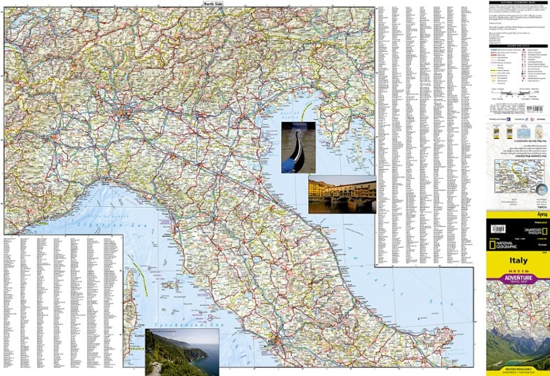 The National Geographic Italy Adventure Travel map provides travelers with an ideal combination of detail and perspective, highlighting points of interest as well as diverse and unique destinations.
