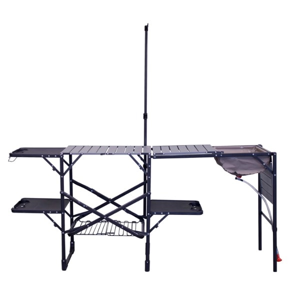I was blessed to locate this piece of camping gear prior to our last trip. We pop up camp and space is always limited. This kitchen provides functionality and stability while really remaining compact. We ran gas grills and 6 gallon water jugs and the table never flinched. Thank you for an amazing product and this will be the first stop when purchasing gear in the future.