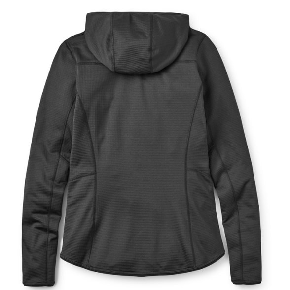 Stay comfortable when you're working hard in the mountains with this Rab fleece hoodie. The grid fleece fabric offers insulation, temperature regulation and mobility. And the hood fits under a helmet.