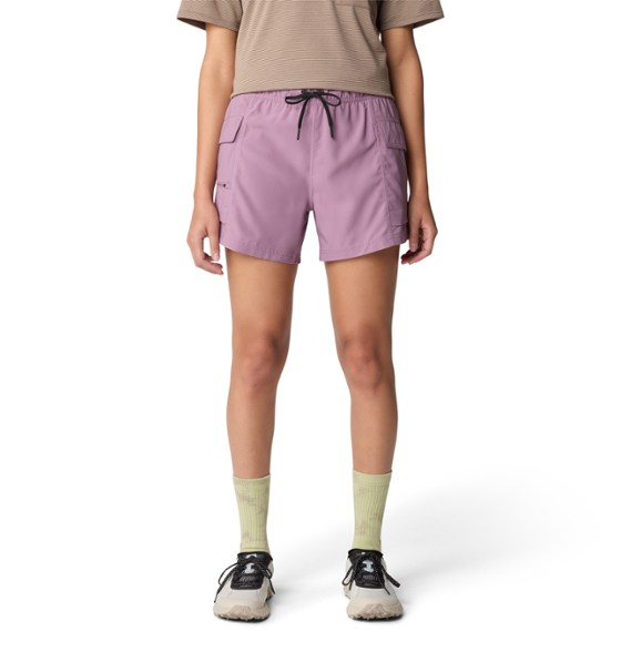 Made for burly trails, these Mountain Hardwear shorts are comfy for all-day hikes. Cargo pockets keep your essentials handy. Their pull-on design eliminates weight and allows for quick on and off.