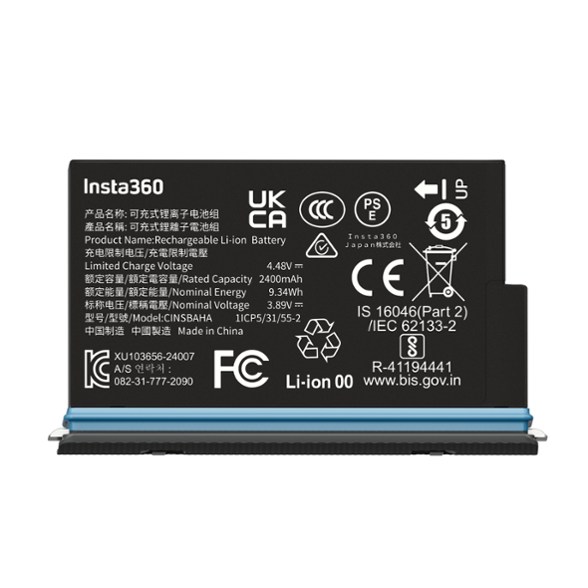 Keep your shoots running longer, even in extreme conditions. This 2400mAh battery provides massive capacity for nonstop shooting with your Insta360 X5: up to 135 min. of 5.7K30fps recording time.